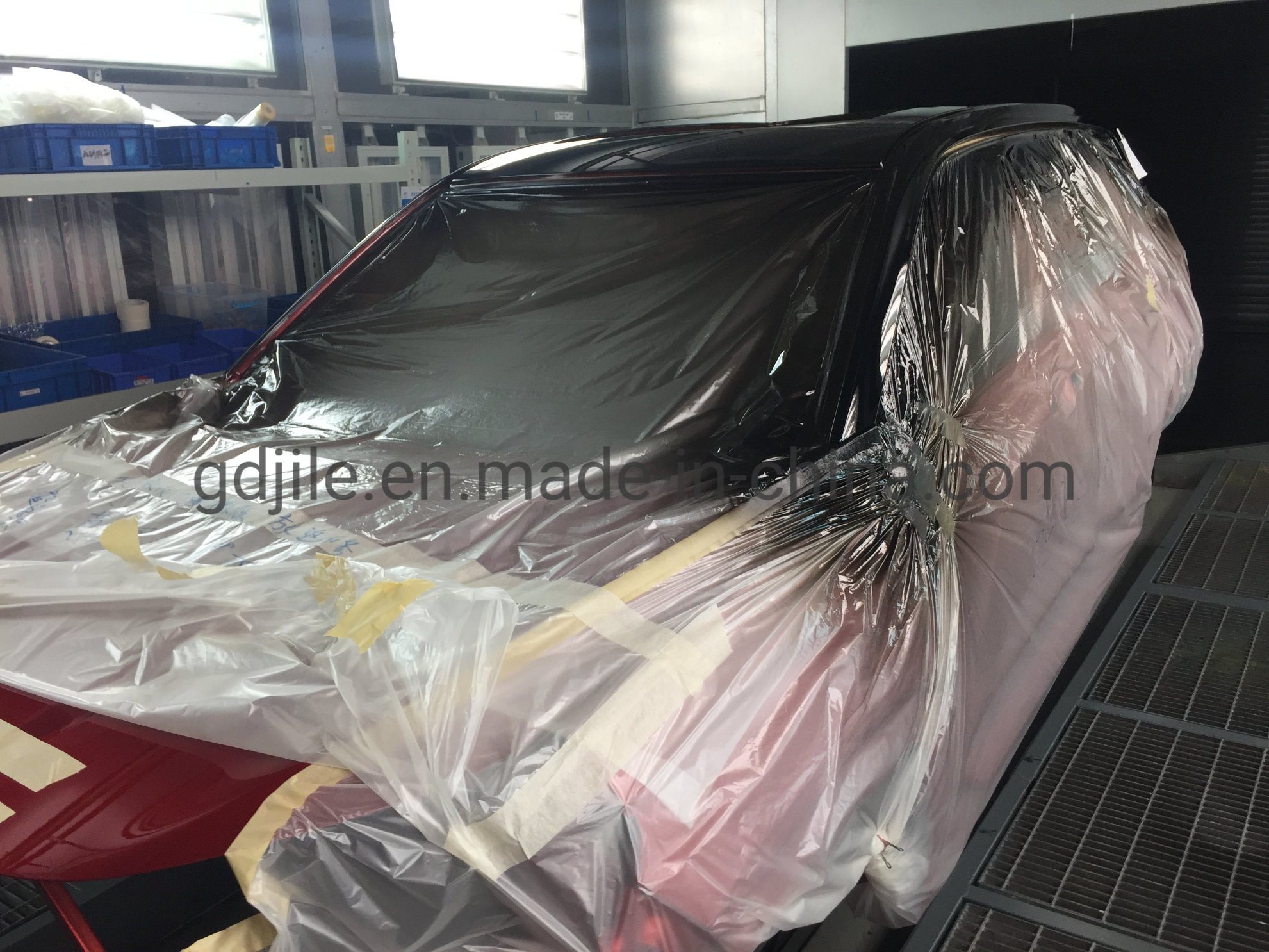 Приложение: В основном используется для защиты кузова автомобиля, бампера и автозапчастей во время окраски распылением.Лента может поворачиваться и растягиваться, подчиняясь форме объектов.Термостойкость достигает до 150°C.Конструкция экономит человеческие силы и сокращает время подготовки к покраске.Пленка типа PE обладает способностью к электростатической адсорбции, что помогает пленке прикрепляться к поверхности краски.