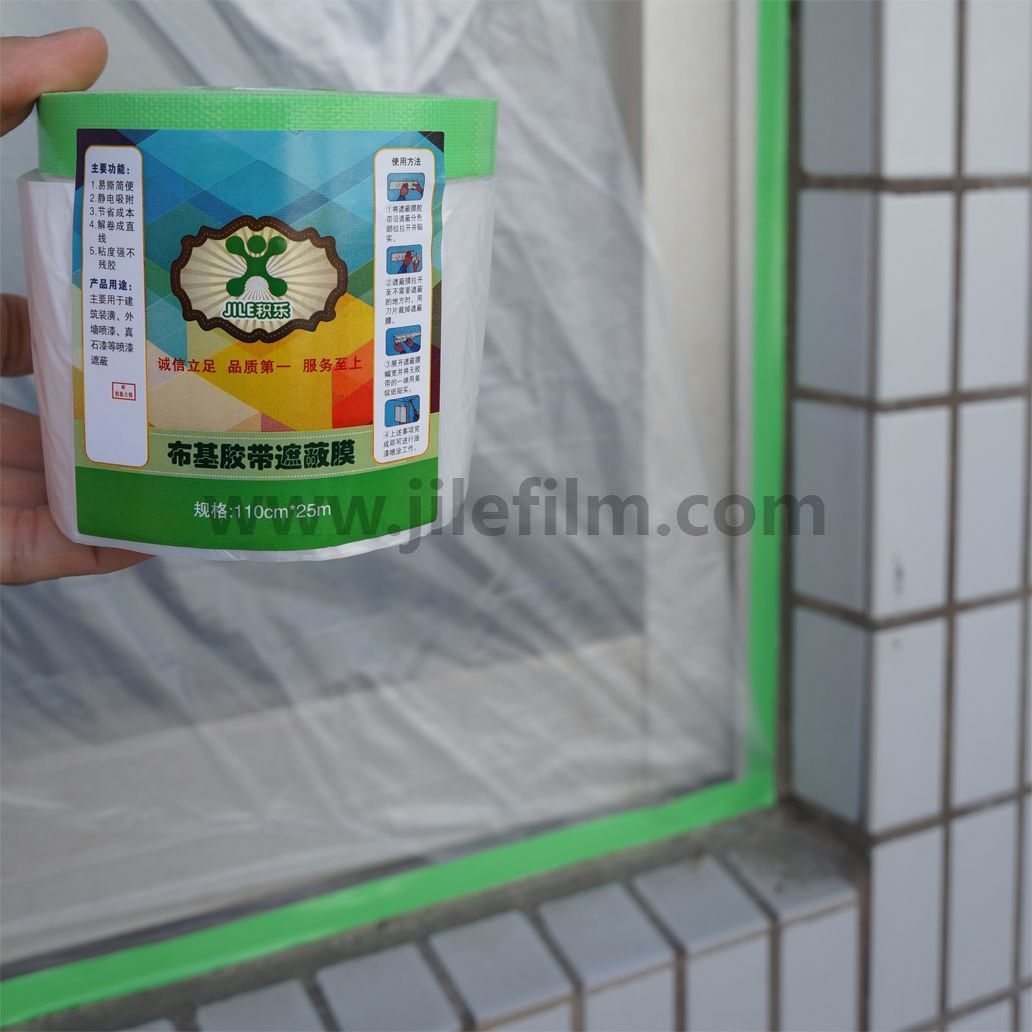 В основном применяется для окраски наружного мрамора.Пленку большого размера можно свернуть в небольшой валик, который удобно использовать, обеспечивая быструю маску и экономию труда.Полиэтиленовая пленка обладает электростатической адсорбцией и легко рвется.Лента водонепроницаема, и на ней нелегко оставить клей.Поскольку на открытом воздухе больше дождя и пыли, а мраморная поверхность грубая и неровная, для ее прочного приклеивания требуется очень прочная водонепроницаемая лента.Поэтому клиентам рекомендуется использовать их для маскировки наружных стен.